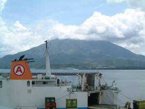 今日は午前中から強い日差しが降り注ぎ、いつもよりも暑く感じられました。ラジオから流れてきた 情報によると、お昼過ぎの時点で34度を越えていたようですから、暑いわけですね。 さて、まずは「フェリーきかい」と桜島です。雲があったので桜島の頂上は隠れてしまっていますね。 ところで8月3日に「フェリーあまみ」がチャーターで枕崎周辺のナイトクルージングをするようです。 料金は3500円とか。枕崎がもう少し近ければ行ったのですが・・・。