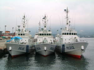「ほたか」も入って6隻の巡視船を一度に撮影できました。わーい。 明日の射撃訓練は10:00〜17:00に佐多岬西方で行われます。「あそぎり」は警戒船として参加するのかもしれません。