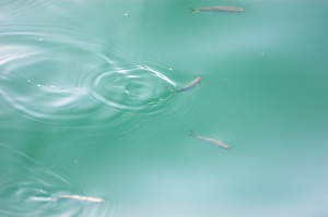 海面をボラの子のグループが2つ、3つスーイスイと泳いでいきました。このボラって言う魚はサビキ釣りとかしてると、時々かかりやがって仕掛けを メチャクチャにするのであまり好きではありません。でも、三瓶だったかどこかで60センチ位のがかかって、それを釣り上げた時はうれしかったですね。 しかもから揚げで食べたらなかなかおいしかったですし。