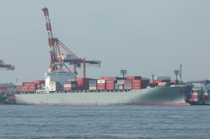 大井埠頭に着けていた「CHANG JIANG BRIDGE」はちょうど着いたところでした。他には「SITC KOBE」、「CAPE CAMPBELL」、 「CAMP CANAVERAL」、「NYK LEO」がいて、しばらくしてから大形海運の「太平丸」(498t)がやって来ました。品川埠頭には今日は1隻も 着けていませんでした。