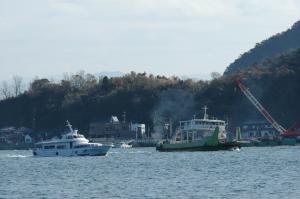 台車式なので火葬時間は1時間半〜2時間。海がなければ退屈ですが目の前は海!寒かったですがほとんどを外で過ごしました。写真は11:25御所浦着 の「フェリーごしょうら」です。